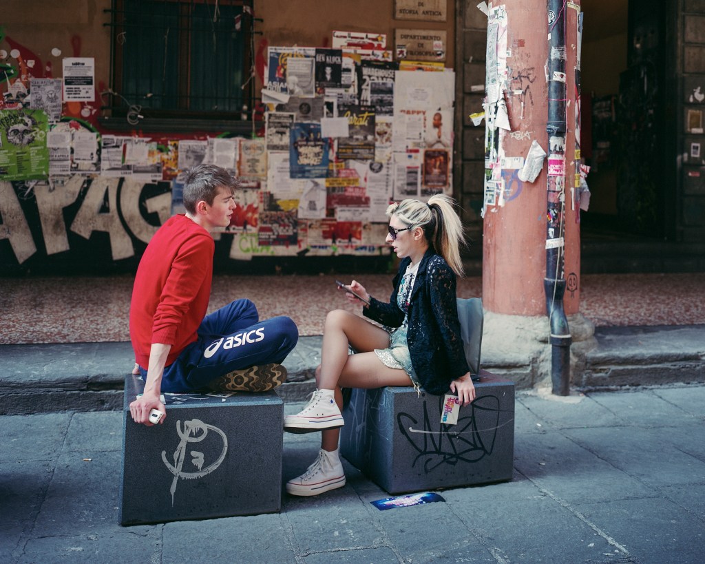 Repérer un angle de rue qui nous échappait, une perspective qui se cachait, voir des verticales et des hauteurs différentes de façades, voir des couleurs passées et des ripolinages frais, voilà ce que les photographes traquent. Ils dosent et taillent la part belle d’une composition qui va attirer notre attention et que nous serions capables d’appréhender, qui nous parle de nous ou de nos voisins. Dans notre monde particulièrement transformé depuis les années 70, ils donnent à voir le monde en train de se faire, se défaire et se refaire, le mouvement de la ville et ce qui nous touche jusqu’à nos déplacements. Loin de la carte postale mais pas si loin du document et de l’archive, ses vues sont de l’histoire prise sous le bras de la grande Histoire. Architecture, sociologie et ethnologie du paysage urbain ou rural tressent avec la poésie des liens qui nous permettent de nous projeter dans notre environnement.